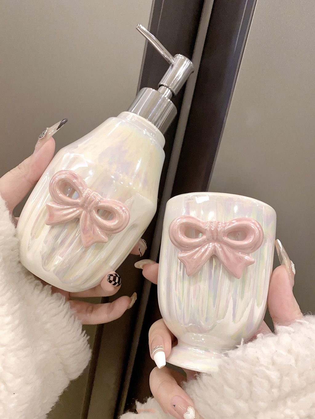 Size: Mouthwash cup 7*10cm, toothbrush holder 7*10cm, soap dish 13*13cm, lotion bottle 5.5*19cm