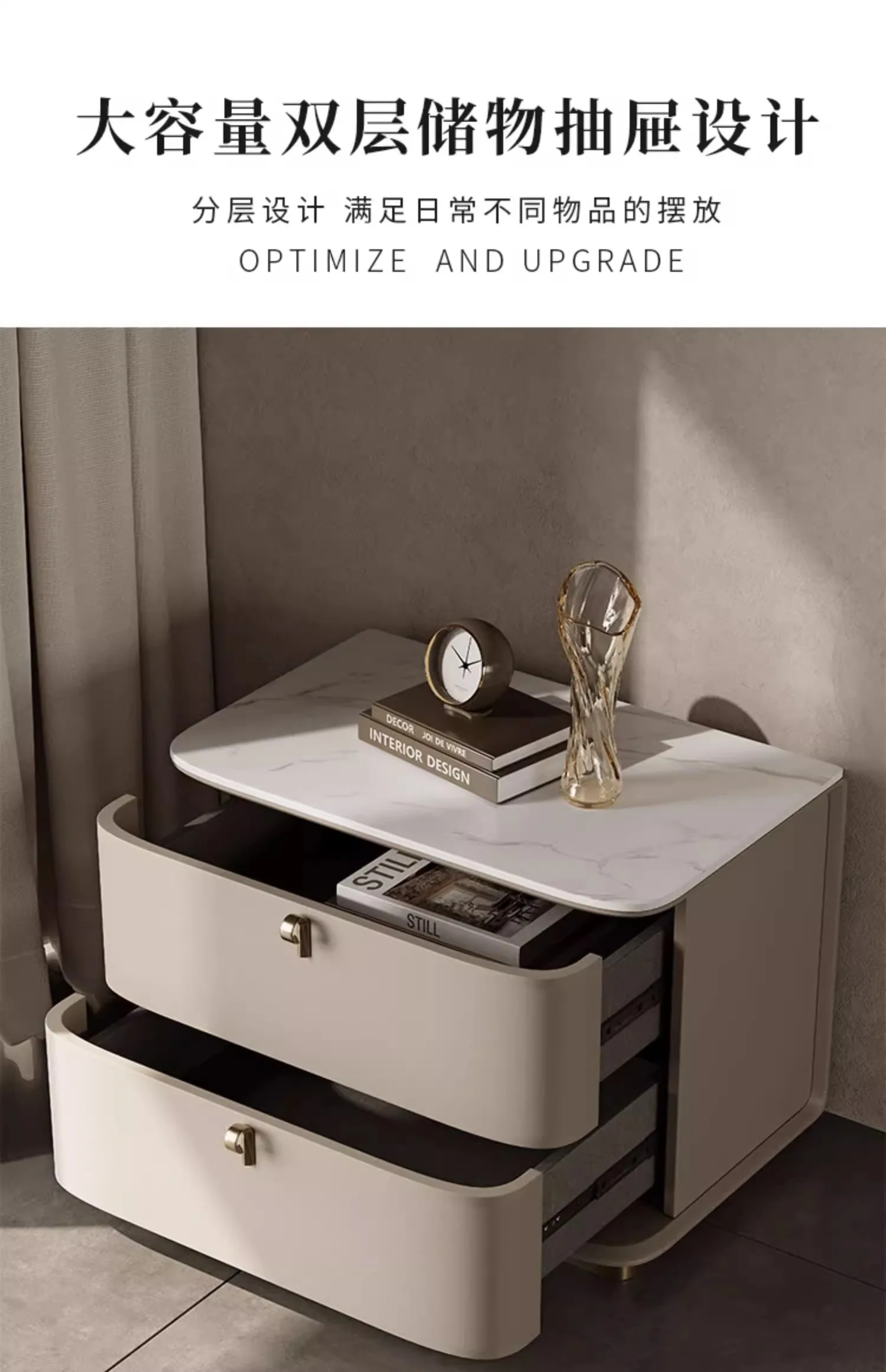 - Two spacious drawers provide ample storage for your nighttime essentials