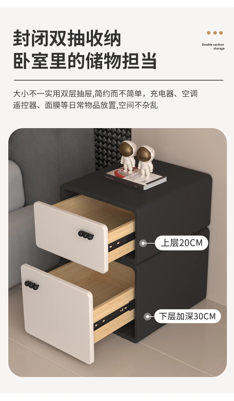 Modern Minimalist Black Nightstand with Hidden Drawer - Stylish Bedside Table Furniture