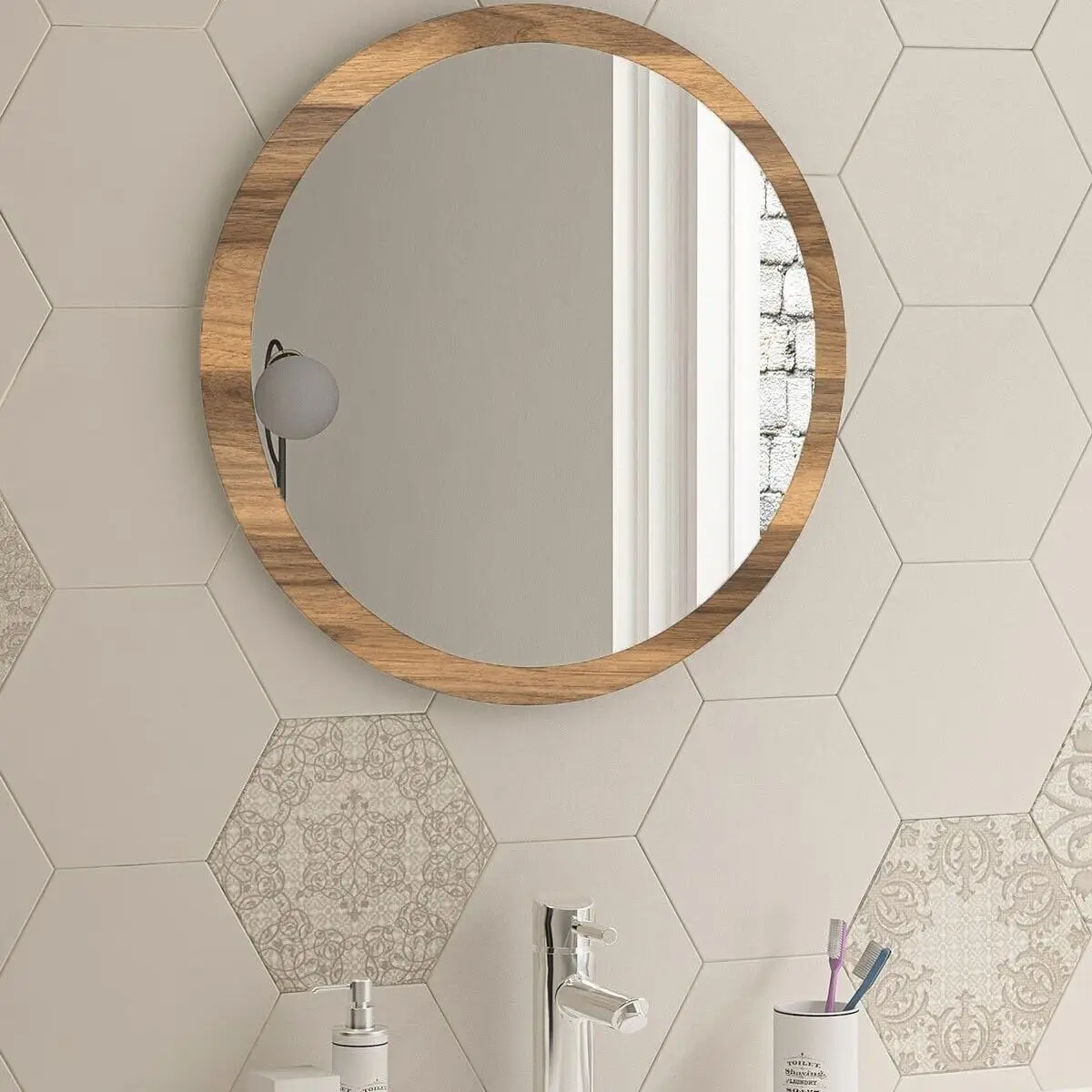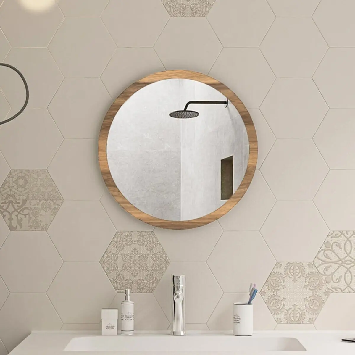 Elegant Round Wooden Wall Mirror for Bathroom and Home Decor