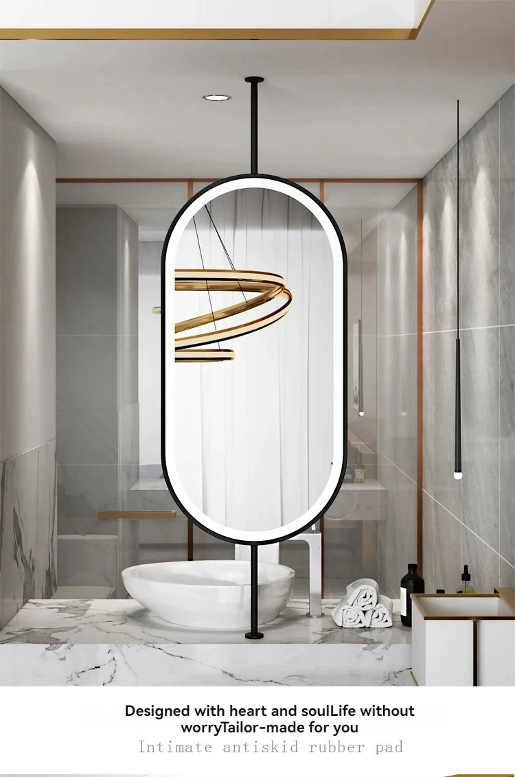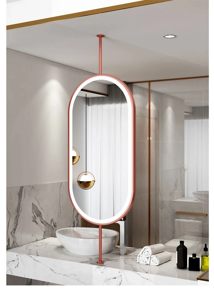 Gold Frame Oval LED Bathroom Wall Mirror with Creative Design - Decorative Home Accessory