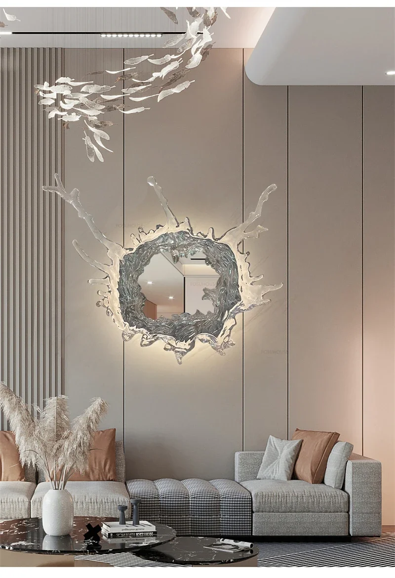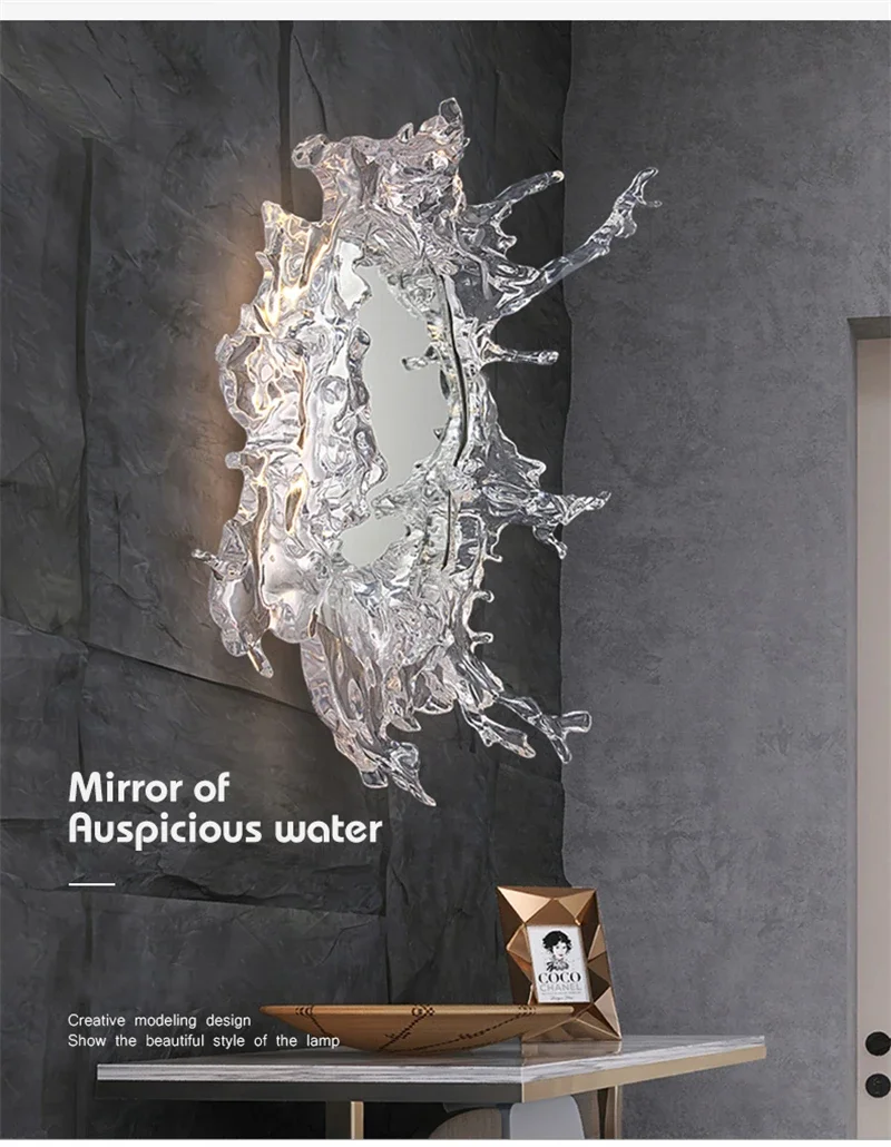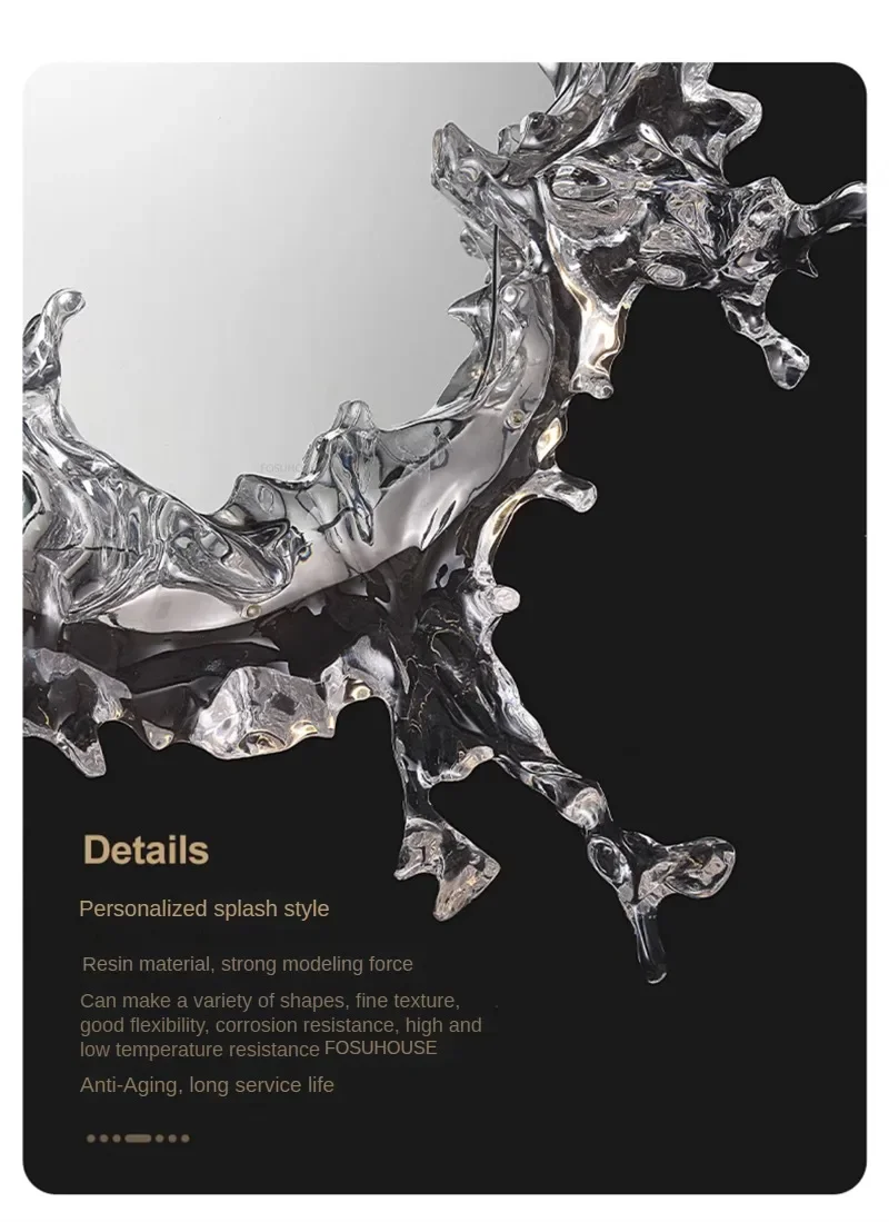 - Enhance Your Home: Transform your living space with this exquisite Designer Home Decor Resin Art Water Splash Decorative Mirror.