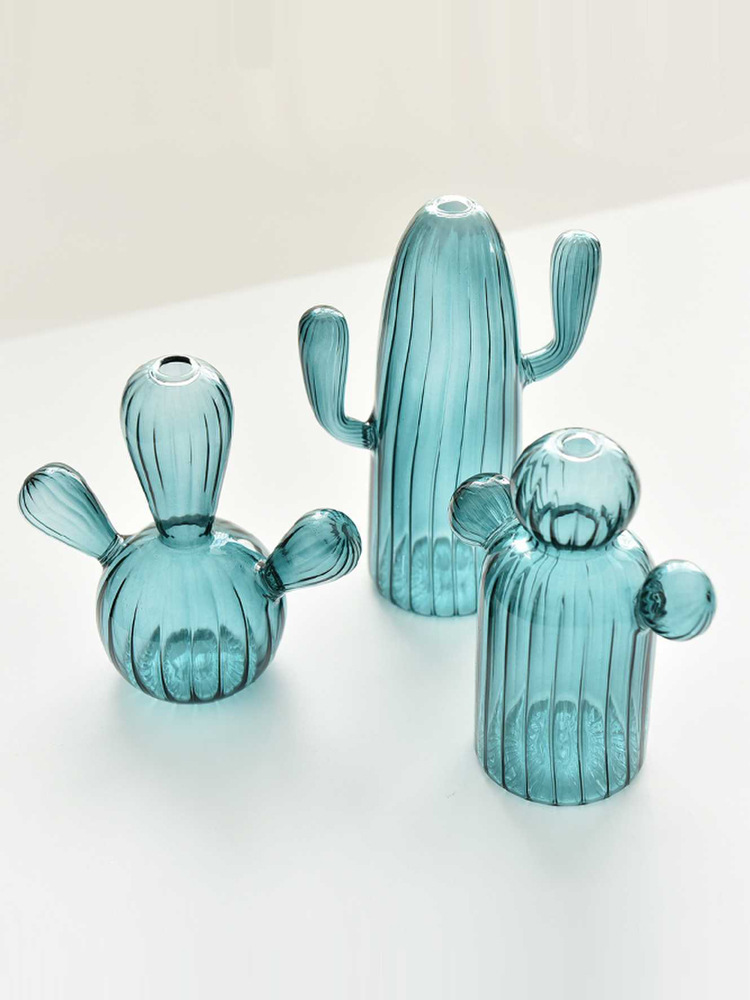 Elegant Glass Cactus Vase Collection for Desktop Decor