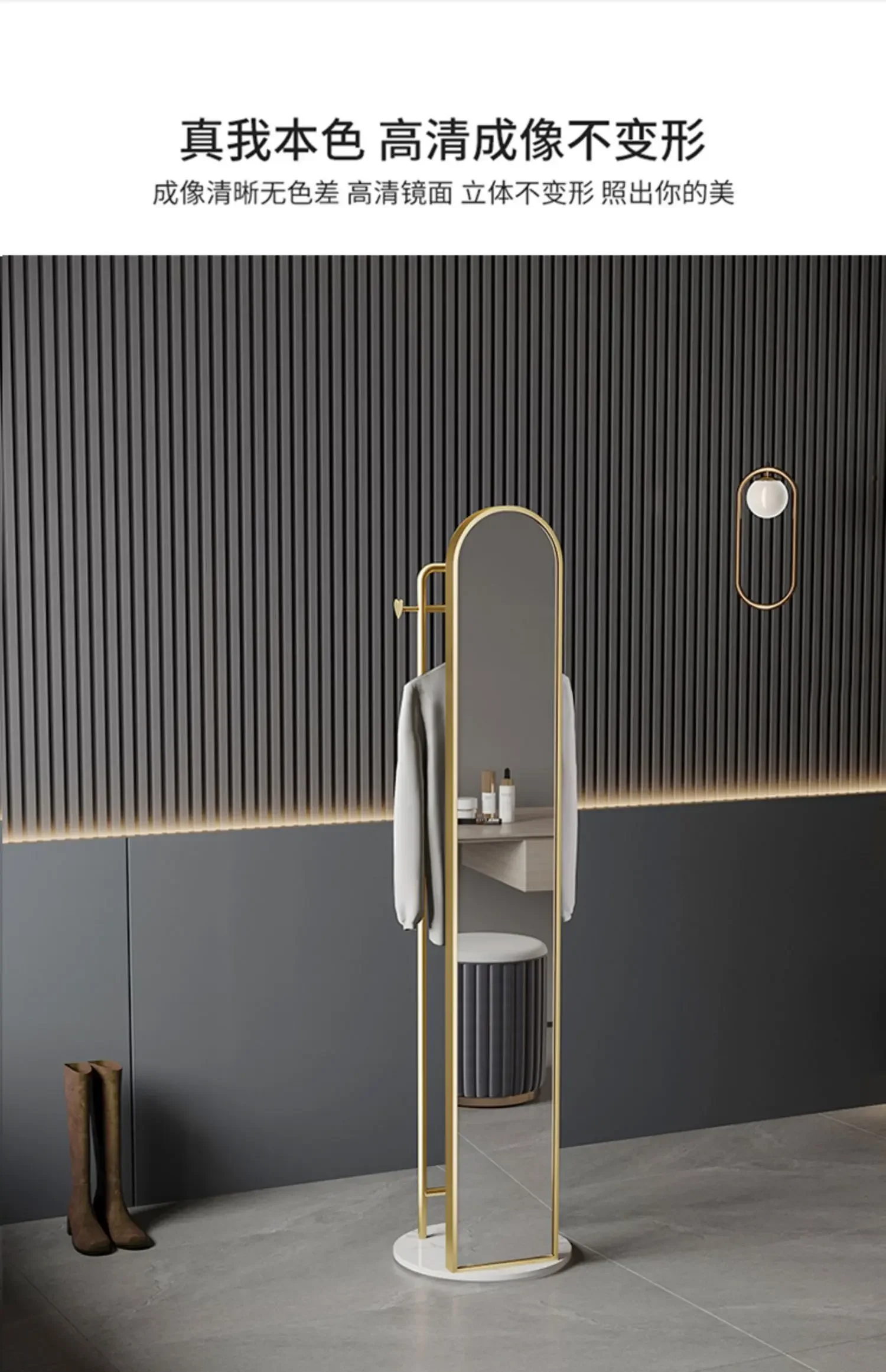 Enhance your living space with our exquisite Dressing Mirror Light Luxury Full Body Mirror. This floor mirror is not just a reflective surface but a statement piece that adds a touch of elegance to your home.