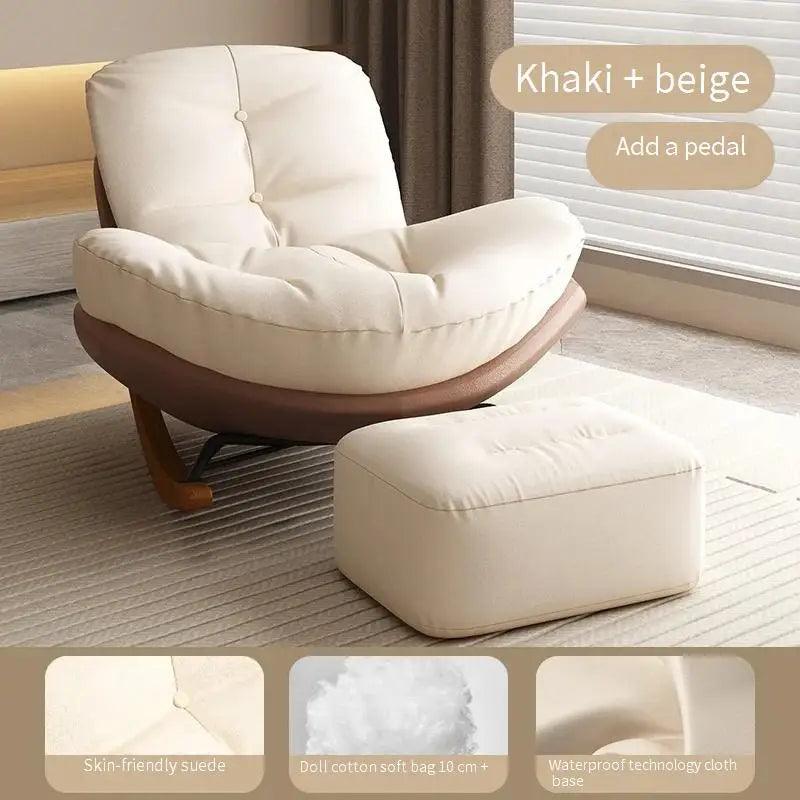 - Material: Premium suede upholstery with wooden rocking base