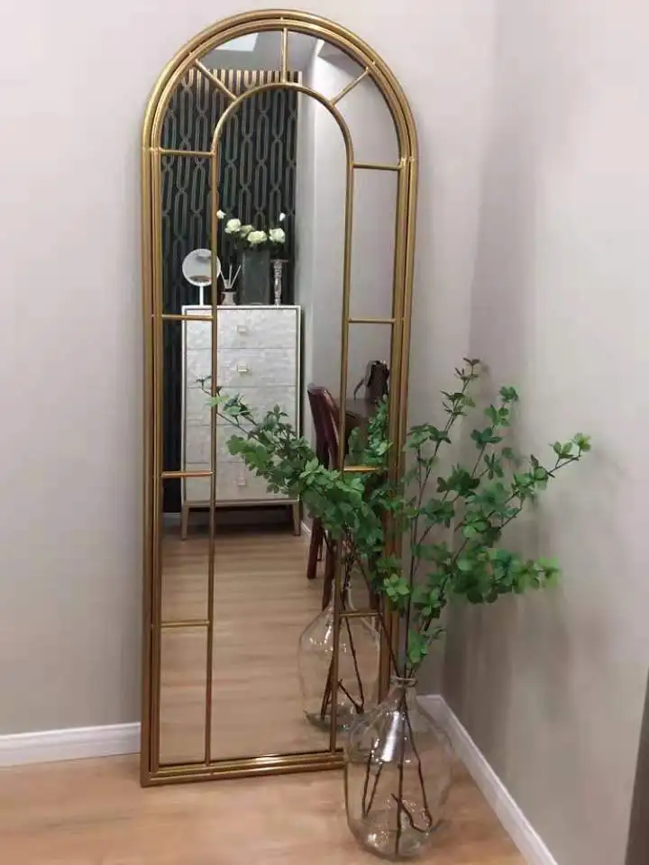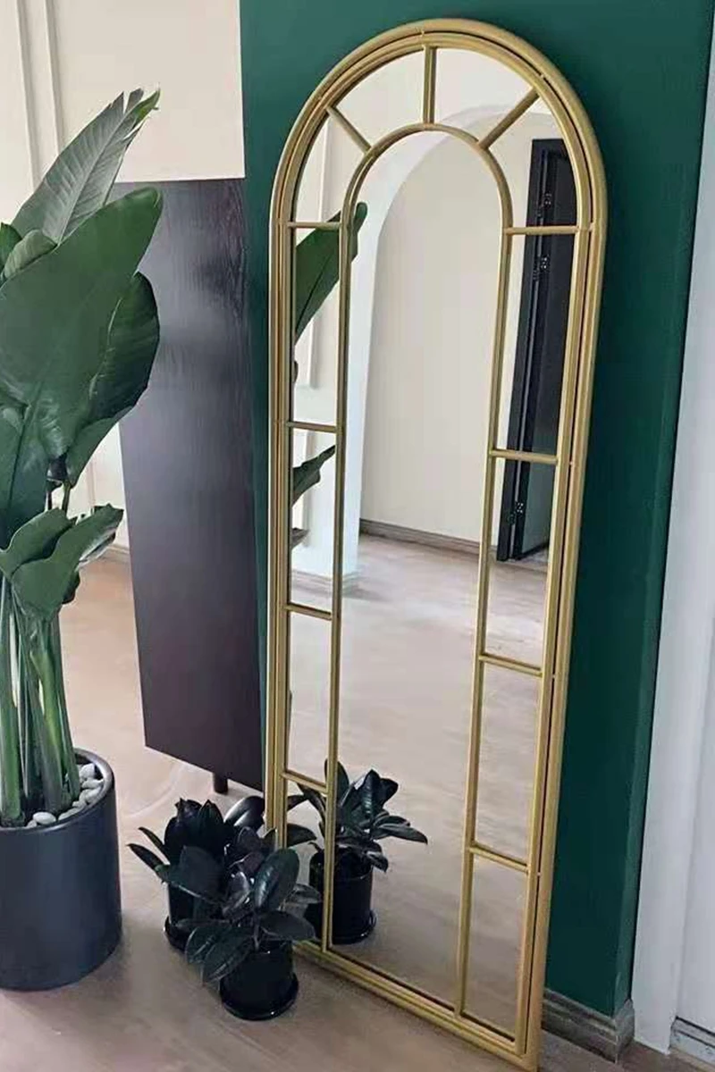 Transform your living space with the Farmhouse Wall Mirror. Embrace the beauty of Korean design with its unique arch irregular frame that adds a touch of elegance to any room. Whether you place it in the living room or bedroom, this mirror serves as a functional full-body reflection spot while doubling up as a captivating home decor accessory. Don't miss out on the opportunity to elevate your space effortlessly with this one-of-a-kind piece.