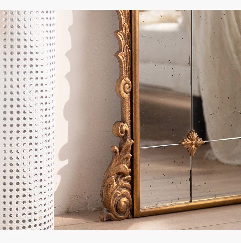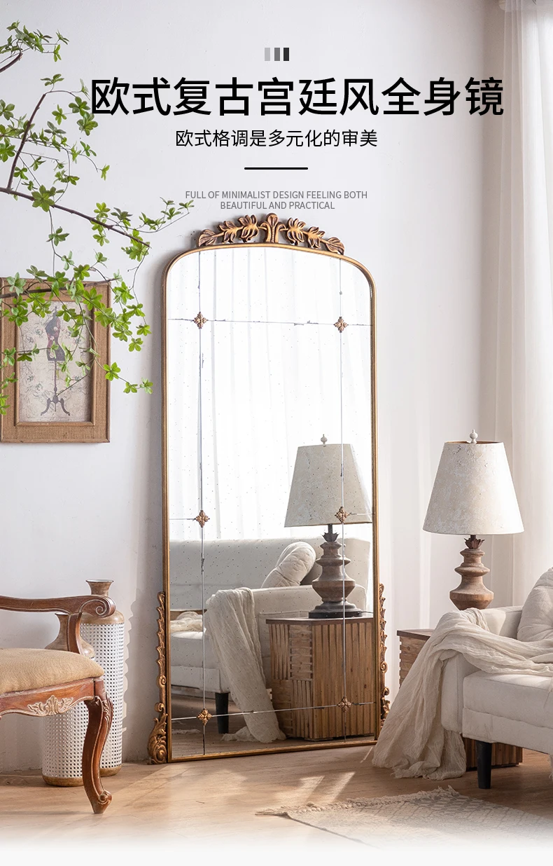 Golden Luxury Full Length Floor Mirror with Unique Artistic Design for Home Decor - Large Decorative Standing Mirror