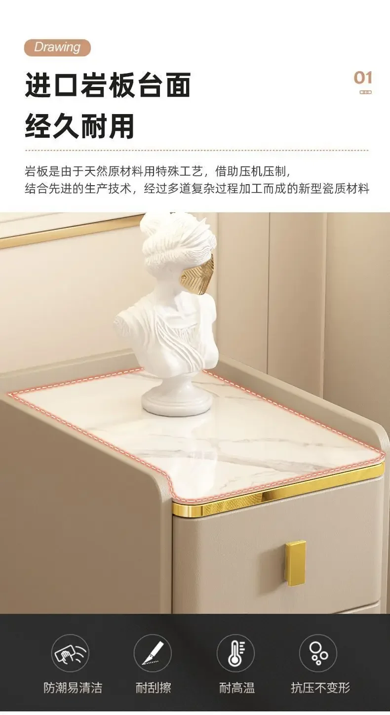 Whether you place it in your bedroom as a nightstand or in your living room as a side table, this piece will elevate the ambiance of your home. Add a touch of sophistication with our Gold Drawers Wooden Nightstand today!