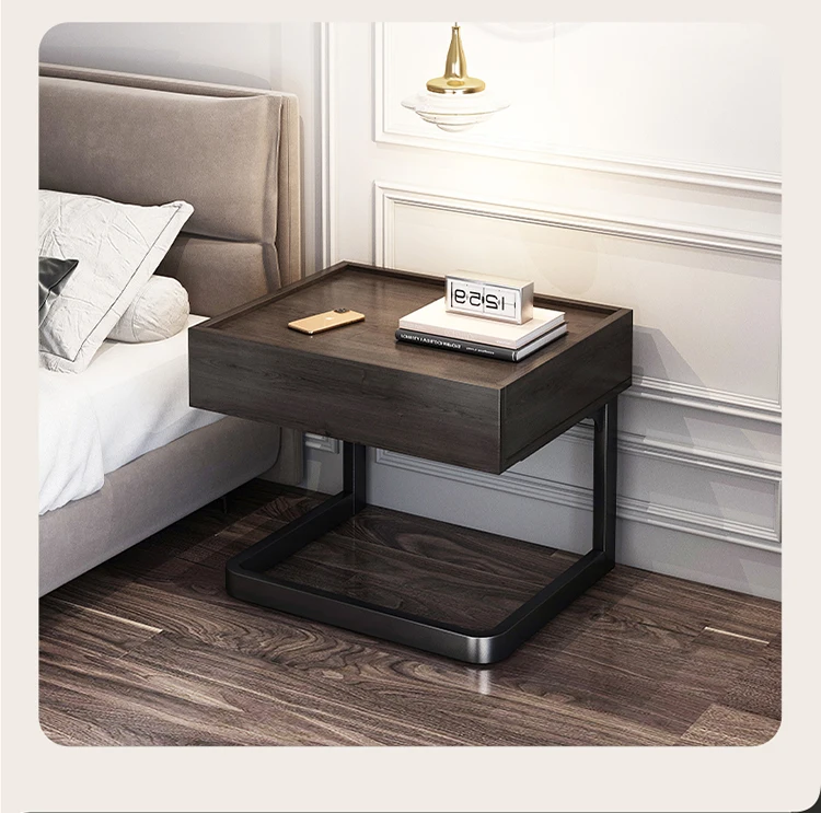 Luxury Hidden Storage Black Nightstand Elegant Bedroom Furniture Japandi Style Vintage Side Table