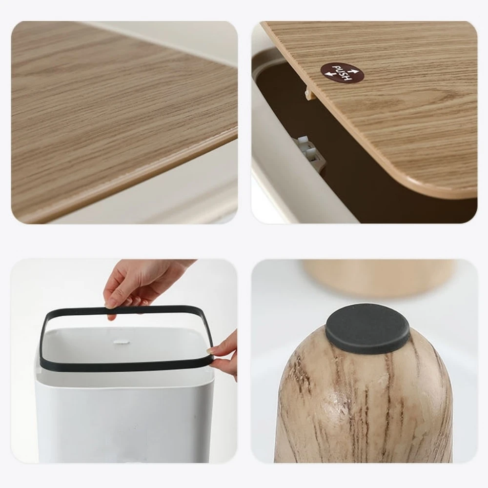 Add a touch of elegance to your space while contributing to a more sustainable environment. Get your hands on this wood grain trash can storage bucket today!