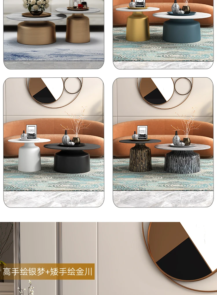 Marble Stone Round Coffee Table Set - Nordic Minimalist Living Room Decor