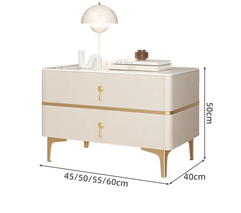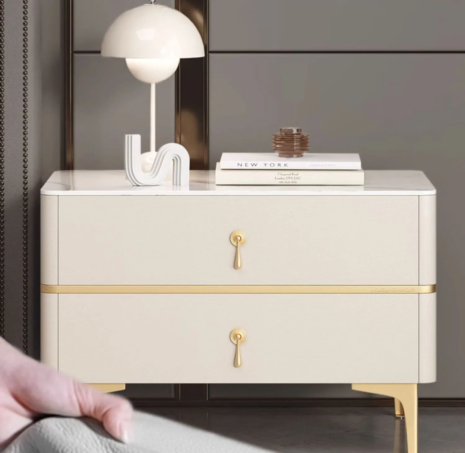 Luxury White Nightstand with 2 Drawers - Modern Bedside Table for Bedroom