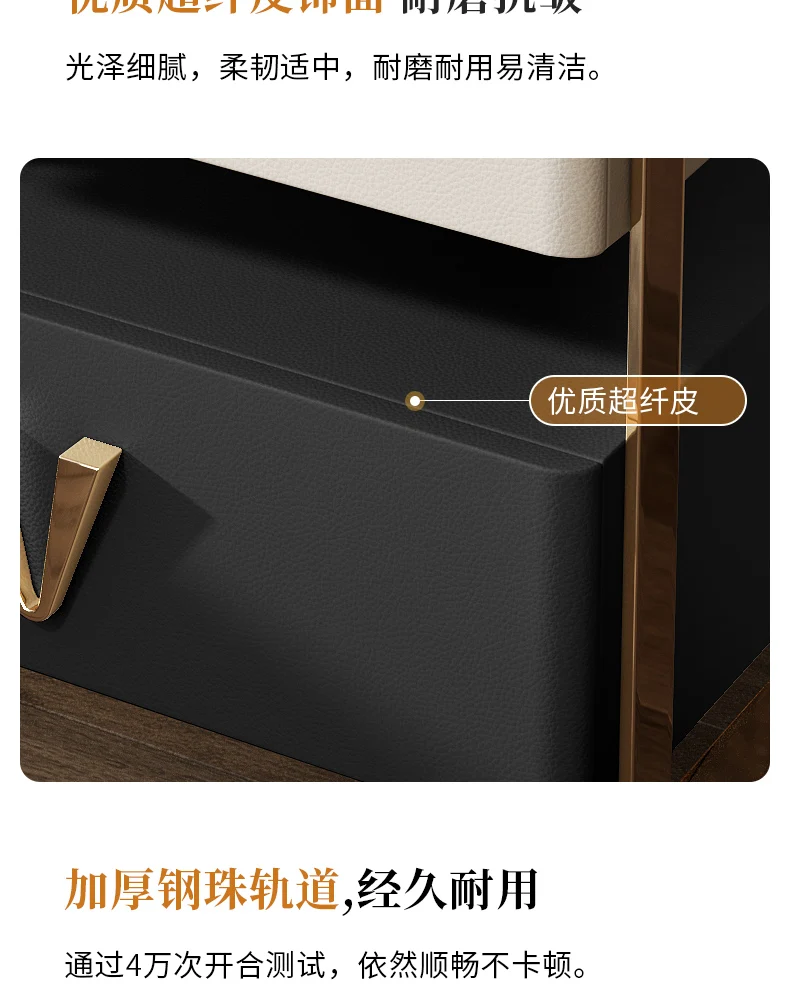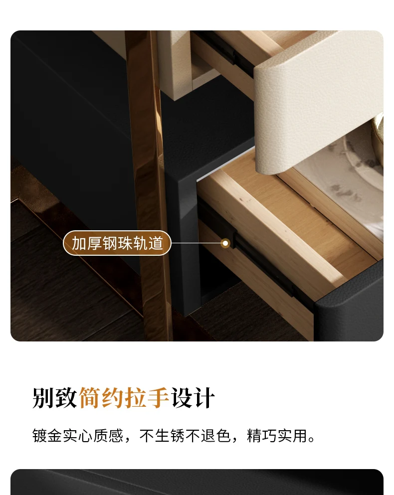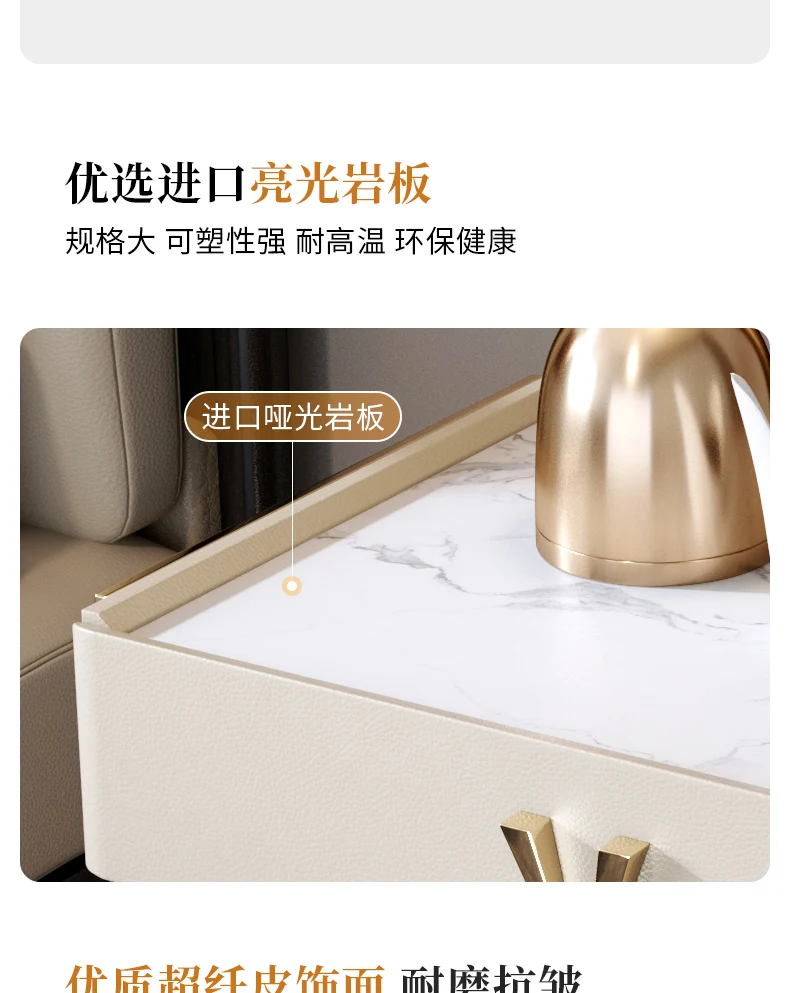 Enhance the ambiance of your bedroom with the Light Luxury Rock Plate Nightstand. This exquisite piece of furniture not only serves as a functional bedside table but also acts as a stylish addition to your living space. The tree-quality solid wood material and leather decorative accents make it a perfect blend of luxury and practicality. With 2 drawers, this nightstand offers ample storage for your belongings while exuding a minimalist and modern aesthetic. Elevate your home furniture collection with this mesmerizing mesita de noche.