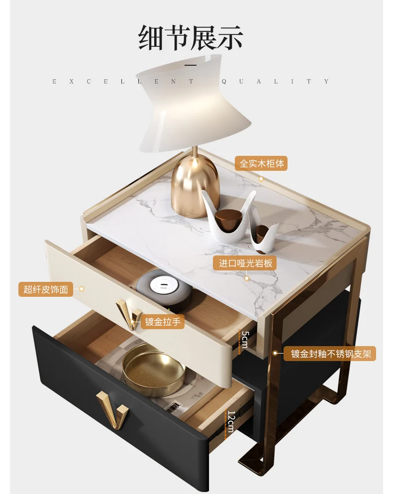Upgrade Your Bedroom with the Light Luxury Rock Plate Nightstand