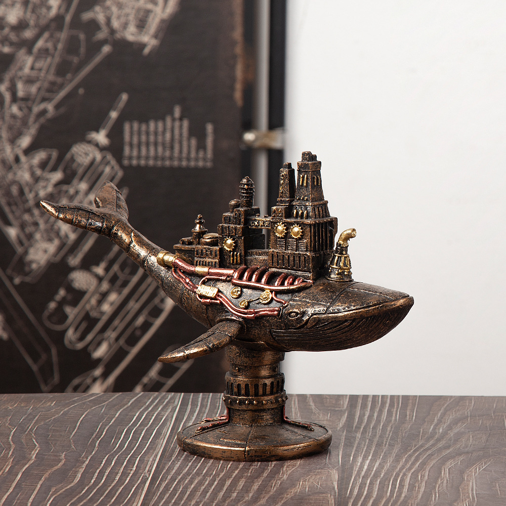 Mechanical Horse Steampunk Whale Ship Resin Tabletop Decoration - American Style