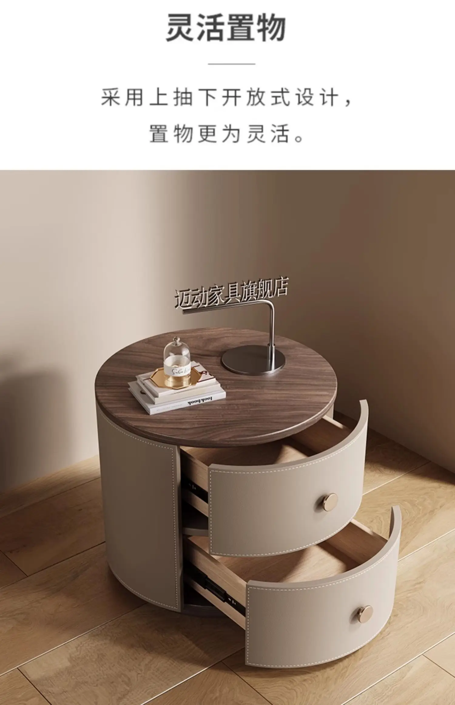 Enhance the sophistication of your bedroom with the Household Light Luxury Round Bedside Table. This small coffee table is not only a stylish piece of home furniture but also a functional storage solution that adds a touch of elegance to your living space.