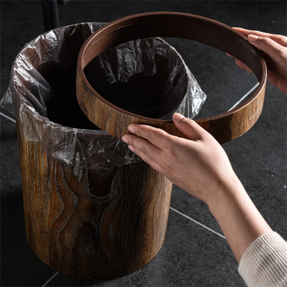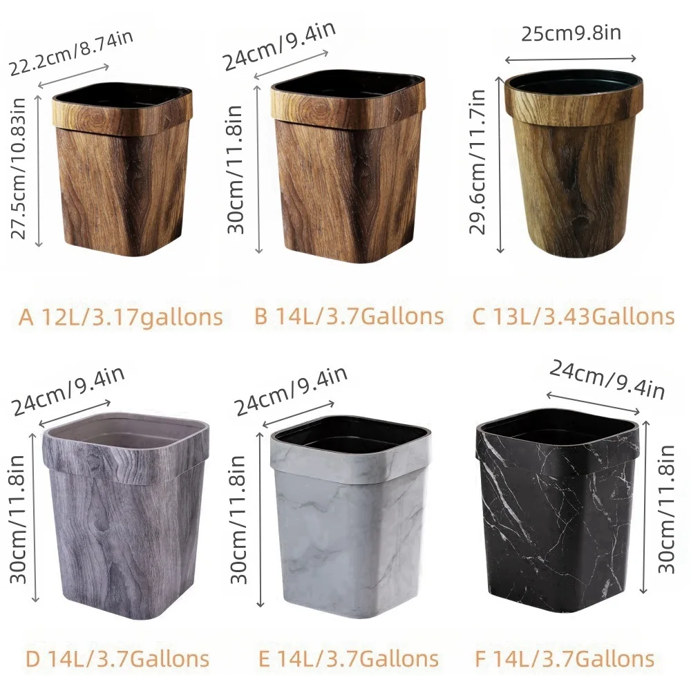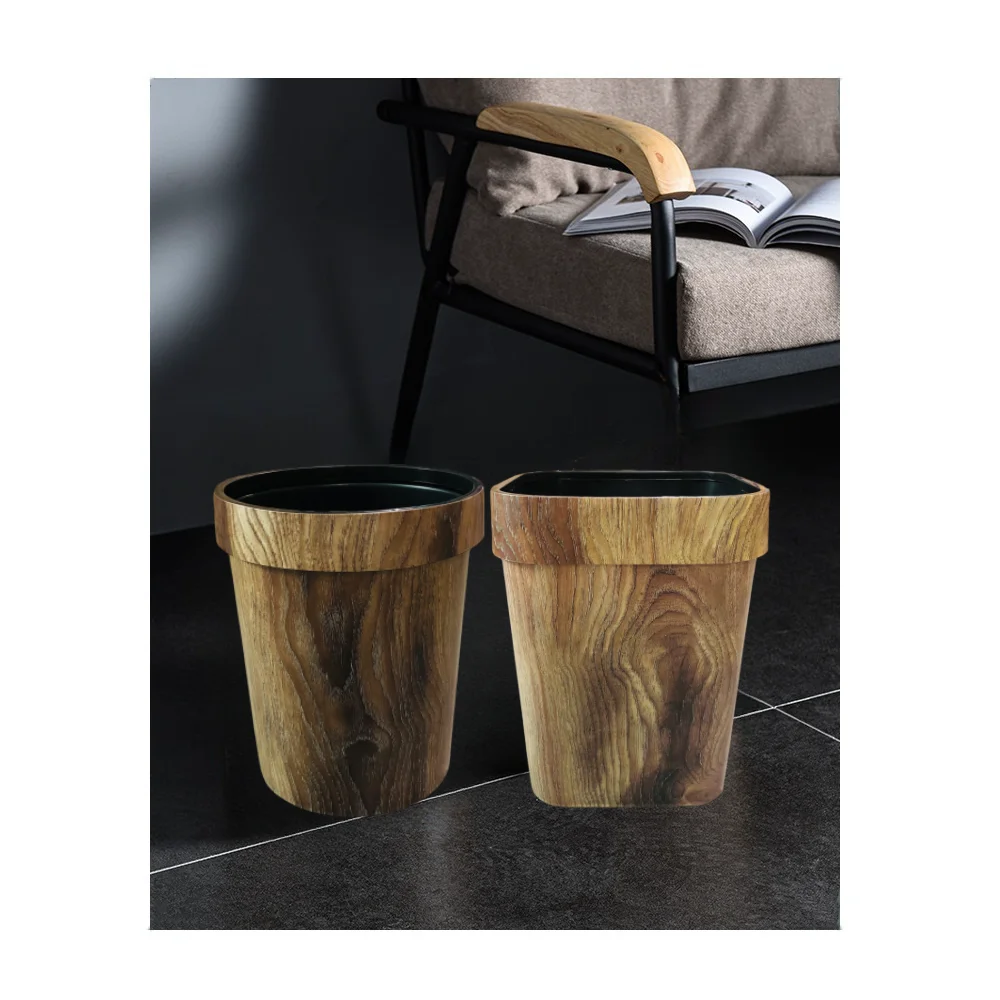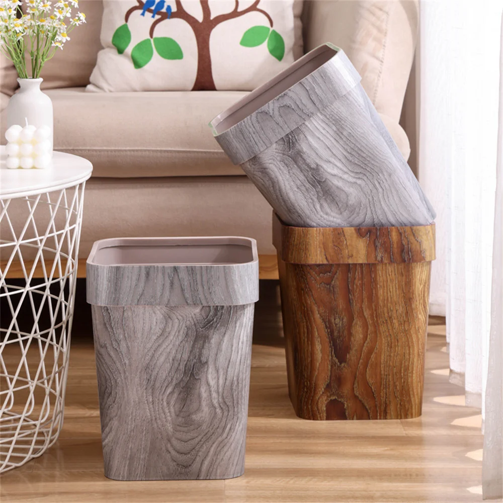 Retro Wood Grain Square Trash Can - Large Capacity Waste Bin