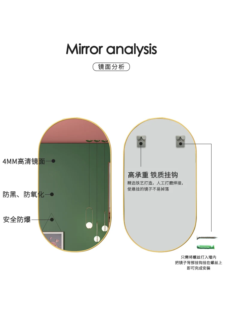 Luxurious Oval Glass Wall Mirror for Home Decor and Makeup