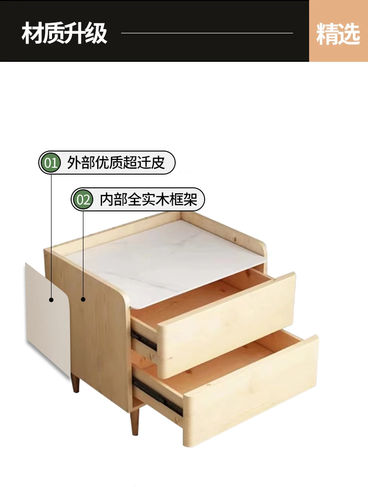 Luxury White Solid Wood Nightstand - Minimalist Modern Bedside Table